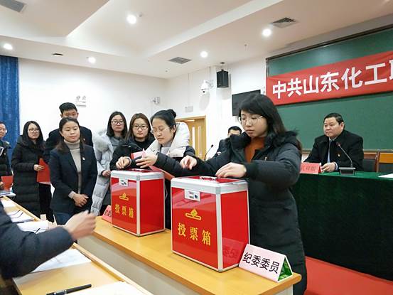 1月16日,中共山东化工职业学院党员大会在第二多媒体报告厅隆重召开。耿晓明同志主持会议,69名党员、6名预备党员参加了大会。大会主要任务是:以习近平新时代中国特色社会主义思想为指导,全面学习贯彻党的十九大精神,紧密结合山东化工职业学院改革创新发展实际,选举产生中共山东化工职业学院新一届委员会和纪律检查委员会,认真回顾搬迁新校区以来的工作,动员各级党组织和全体共产党员,立足新时代、明确新征程、再创新业绩,为实现学院快速健康优质发展和服务潍坊区域经济社会发展作出新的更大的贡献。会上,中国共产党山东化工职业学院委员会题为《解放思想,抢抓机遇,砥砺前行,为实现学院又快又好发展而努力奋斗》的工作报告,和中国共产党山东化工职业学院纪律检查委员会题为《坚持全面从严治党,严格落实“两个”责任,为实现学院又快又好发展提供坚强保障》的工作报告,以书面形式提请大会审议。与会代表审议通过了大会选举办法和总监票人、监票人、总计票人、计票人,党委委员候选人、纪委委员候选人建议名单。大会在总监票人和监票人的监督下,以无记名投票方式选出了孔祥奴、王敬良、李欣、耿晓明、潘慧5位同志为学院新一届党委委员,李爱国、耿晓明、潘若方3位同志为学院新一届纪委委员。大会一致审议通过了《中共山东化工职业学院党员大会决议》。