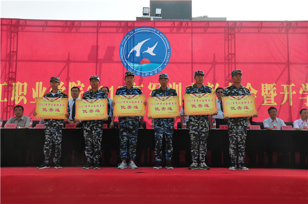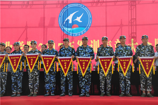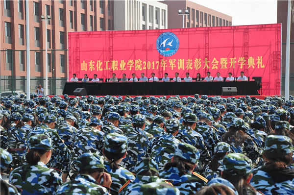 9月15日,山东化工职业学院2017级新生军训表彰暨开学典礼隆重举行。山东化工职业学院领导班子、全体教职工,滨海教育投资集团董事长秦春雨,山东(潍坊)海洋科技大学园管理办公室副主任张玉才,以及2017级新生参加了表彰大会和开学典礼。