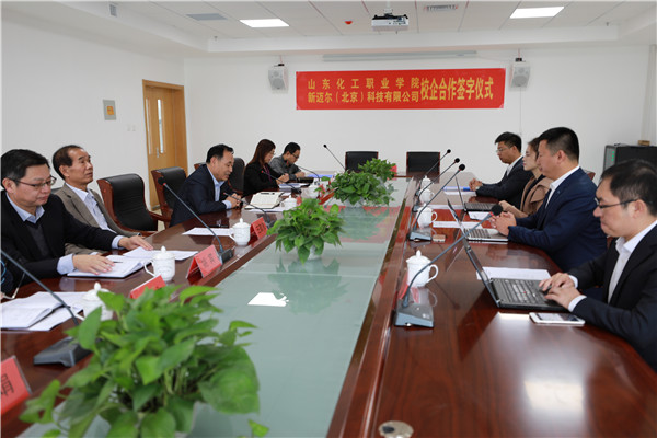 2017年10月17日,山东化工职业学院与新迈尔(北京)科技有限公司举行校企合作签约仪式。此举标志着山东化工职业学院在搬迁潍坊新校区后,在创新教育教学、深化校企合作方面迈出了崭新的一步,也以优异的办学成果向党的十九大胜利召开献上了一份厚礼。山东化工职业学院院长王敬良、常务副院长李欣,新迈尔(北京)科技有限公司总裁车云月、教学研发总监周贤等参加了签约仪式。