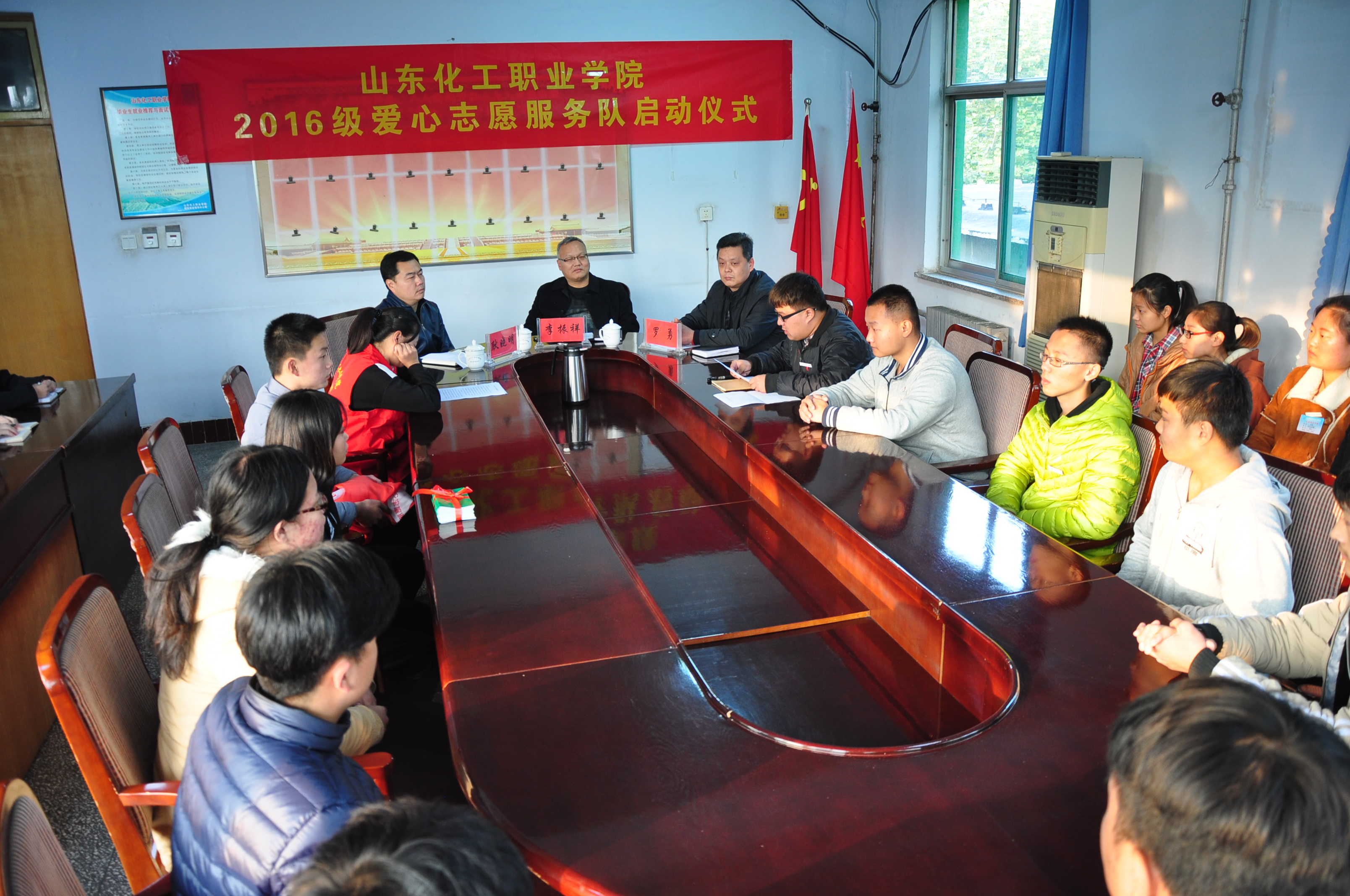 11月2日下午,山东化工职业学院举行2016级大学生爱心志愿者服务队启动仪式。学院党委副书记、副院长李振祥,学院团委书记耿晓明、团委干事罗勇,以及25名爱心志愿服务队队员、部分学生会干部参加了启动仪式。