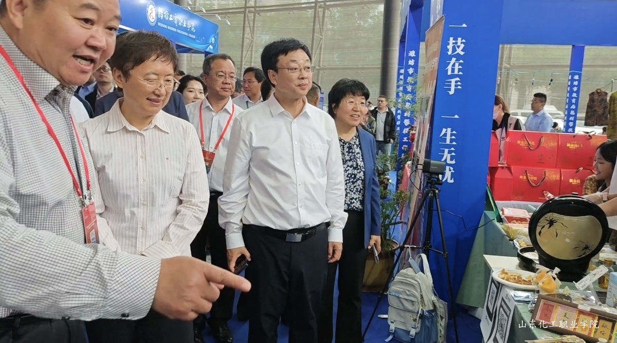 山东省人大常委会副主任、山东省工商联主席(兼)、省总商会会长王随莲,潍坊市委书记刘运、副市长陈端梅等省市区领导参观了学校职教成果展区。学校党委书记孔祥奴介绍了学校的办学优势、技术创新等职教成果。