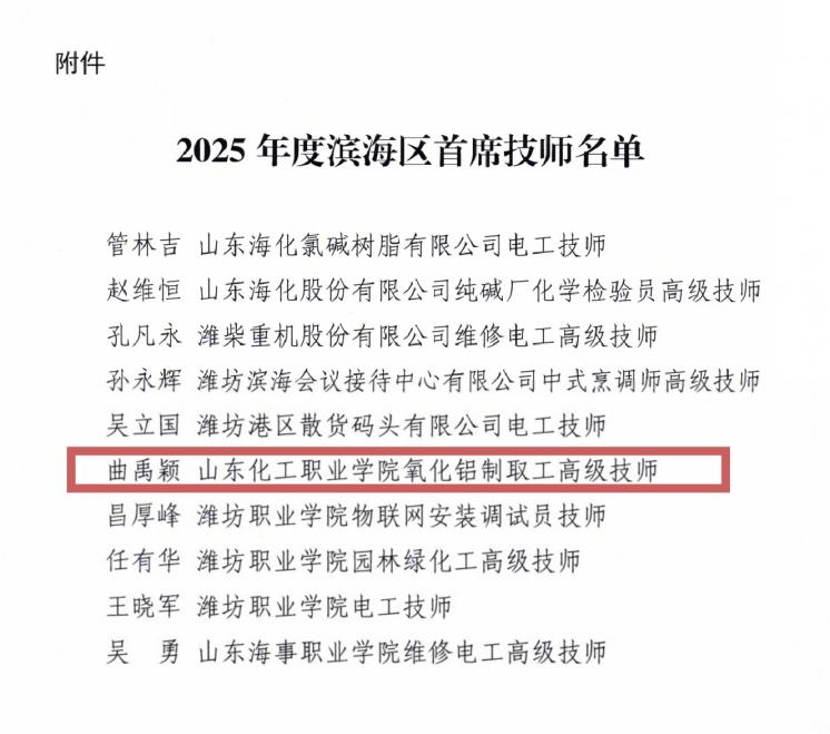 近日,2025年度滨海区首席技师名单公布,我校教师曲禹颖凭借过硬的技术能力与深厚的职业素养成功入选,荣获“滨海区首席技师”称号,是我校教师首次荣获该类称号。这不仅是对曲禹颖个人专业能力的高度肯定,也是我校在高技能人才培养和师资队伍建设方面取得的又一重要成果。