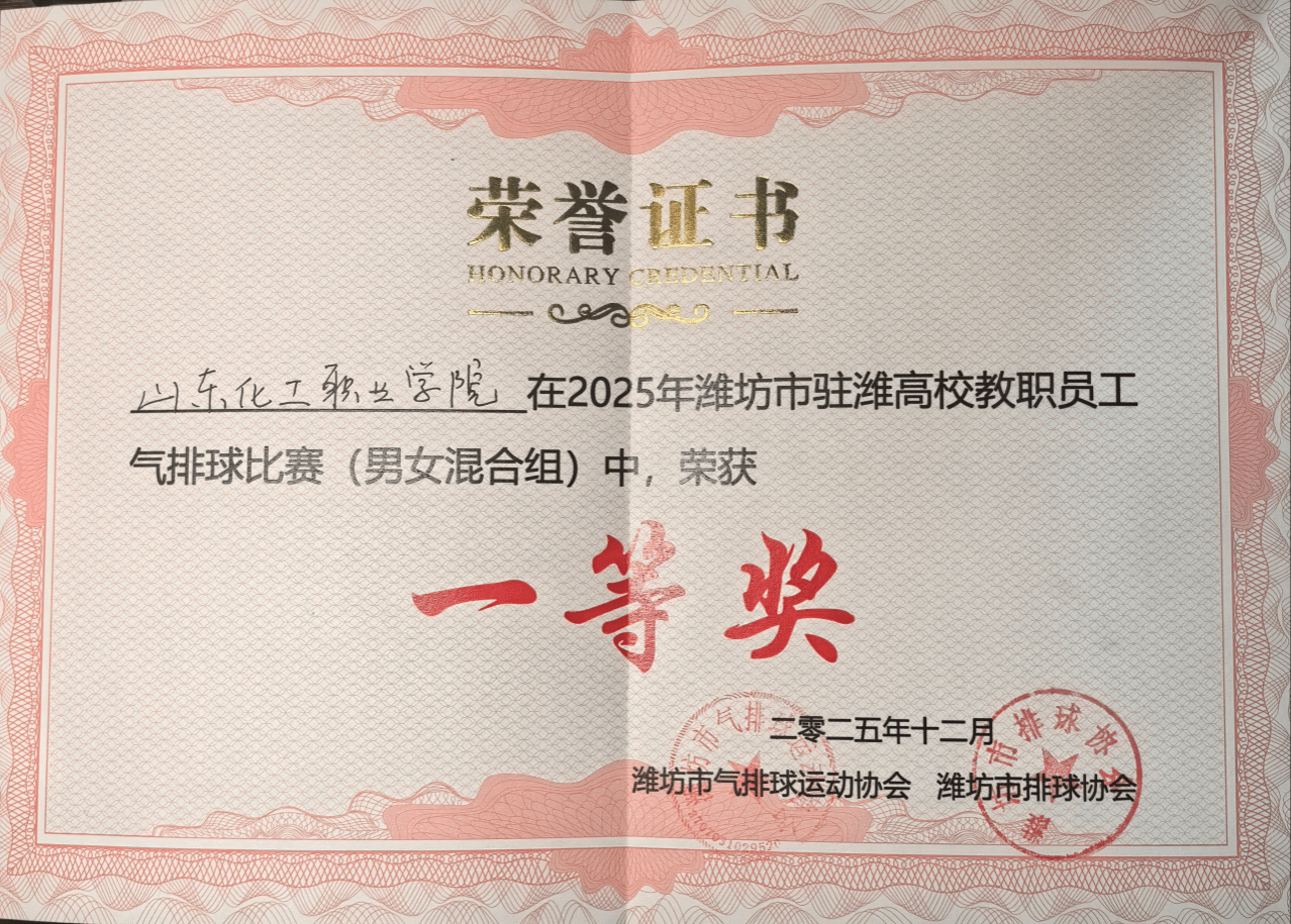 近日,由潍坊市总工会发起,潍坊市气排球协会、潍坊市排球协会主办的“2025年潍坊市驻潍高校教职员工气排球比赛”圆满落幕,我校教职工代表队凭借出色的临场发挥和默契的团队配合,最终斩获混合组一等奖。
