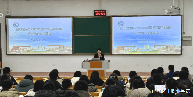 鞠桂芹以“成果导向的职业院校教师教学科研能力提升内涵要义和实践路线”为题作讲座。她聚焦青年教师如何开展教研与科研工作,围绕职业教育国家相关政策、专业建设、课程建设、教学改革和设计、教学研究与教学成果总结凝练等内容,引用实践案例,进行深入浅出地讲解与分享。整场讲座内容详实、见解深刻,为下一步教师教学科研工作的开展提供创新思路和有效方法。