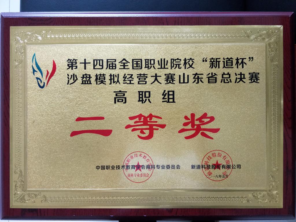 5月26日,第十届山东省大学生科技节创新创业模拟企业经营大赛(职业院校组)暨第十四届全国职业院校“新道杯”沙盘模拟经营大赛山东省总决赛在山东水利职业学院举行,山东化工职业学院管理工程系楚红兰、袁晓玲两位老师共同指导的两队选手分获一、二等奖。其中:2016级市场营销一班赵英杰、岳贤龙、李恒光、毕永康、刘晓等荣获高职组一等奖;2016级市场营销二班马浩、王晨、程志、张文琳、荆超凡等荣获高职组二等奖。