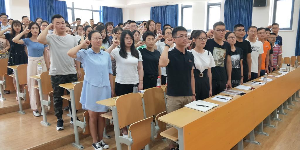 在30日下午举行的教师入职宣誓仪式上,山东化工职业学院组织人事处副处长殷晓丽带领大家庄严宣誓:“我志愿做一名光荣的人民教师,忠诚于党的教育事业,贯彻国家教育方针。崇尚科学,追求真理,遵纪守法;热爱学校,恪尽职守,严谨治学;敢于创新,团结同事,立德树人;为人师表,尊重学生,甘为人梯,师生平等,教学相长。以提高民族素质为己任,为培养社会主义事业的建设者和接班人而努力奋斗!”