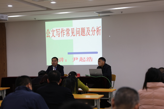 尹起浩部长在授课中讲到,公文写作是指公务文书的起草与修改,是撰写者代机关立言,体现机关领导意图和愿望的写作活动。尤其是机关单位,与公文接触多,更应该注重公文的写作形式和行文规范,平时要多积累,多观察。