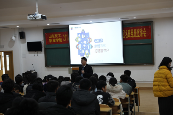 首先由山东京博石油化工公司的祁经理给大家做了一场招聘宣讲会,从公司的规模、制度、前景、待遇等方面为同学们进行了介绍,还与现场的同学们进行有奖问答互动。现场气氛热烈,情绪高涨。听过宣讲会后,很多同学与京博石化签订了就业意向。