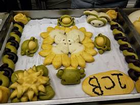 作品4:海底世界。“海纳百川,有容乃大。”宽广深邃的大海容纳着千百种生物,我们的面点制造了一个小小的海底世界,有鱼、海星、乌贼、贝壳、海参等生物。在这里感谢化院以大海般宽广胸怀包容我们每一位年轻教师和学生的同时,也希望学院的教学、科研以及管理等工作在新的一年能够像大海般更加有广度、有深度。