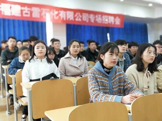 招聘宣讲会上,福建古雷石化公司人力资源部总经理雷学清、化工一部经理陈家洪等向报名应聘的学生宣讲了企业的基本情况、招聘专业、员工薪酬福利待遇及个人发展前景,期待更多优秀学子加入古雷石化团队,成就人生事业。此次招聘,涉及工业分析、石油化工技术、应用化工技术、精细化工、石油炼制技术、高分子合成技术、化工装备技术、油气储运技术、电气自动化技术、工业过程自动化技术等。入职员工见习期转正后,平均月收入10000元以上。
