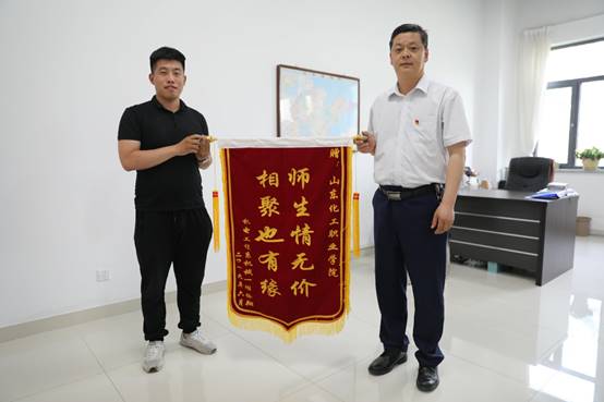 “师生情无价,相聚也有缘”,这是山东化工职业学院2016级机械制造与自动化专业一班学生徐翔送给学院的锦旗上面的话语。6月12日,他从家乡泰安一路乘车数百里,将锦旗送到学院,以此表达对学院的感激之情。当天下午,记者在学院见到了这位小伙子。