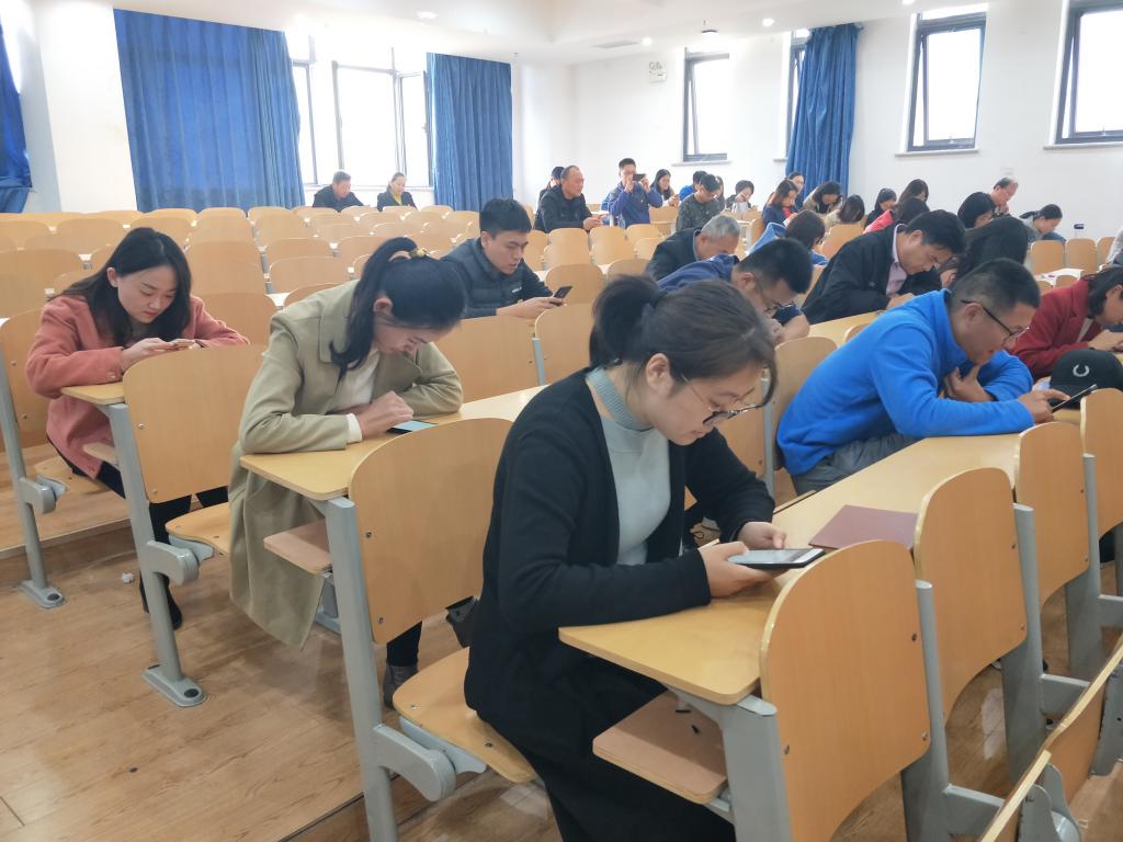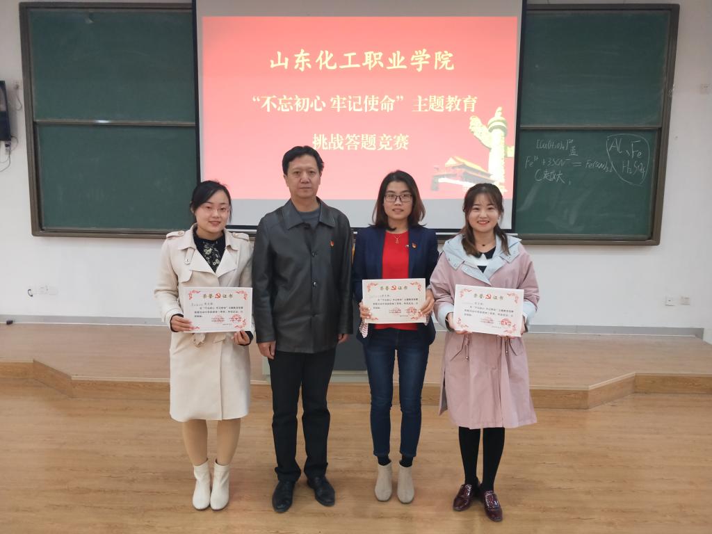 为深入学习贯彻习近平新时代中国特色社会主义思想和党的十九大精神,扎实开展“不忘初心、牢记使命”主题教育,10月31日,山东化工职业学院举行了“不忘初心、牢记使命”主题教育竞赛答题活动,来自全校7个党支部的21名教职工手持手机,在学习强国平台上指尖飞舞,在规定的20分钟时间内,快速抢答题目,最终,基础教学部的李辰老师以最高分脱颖而出获得第一名,基础教学部党支部获得团体第一名。