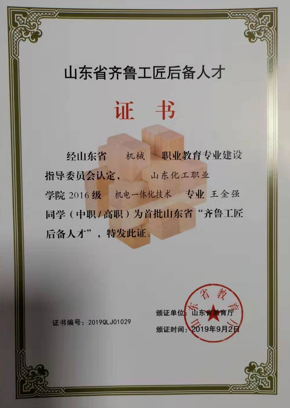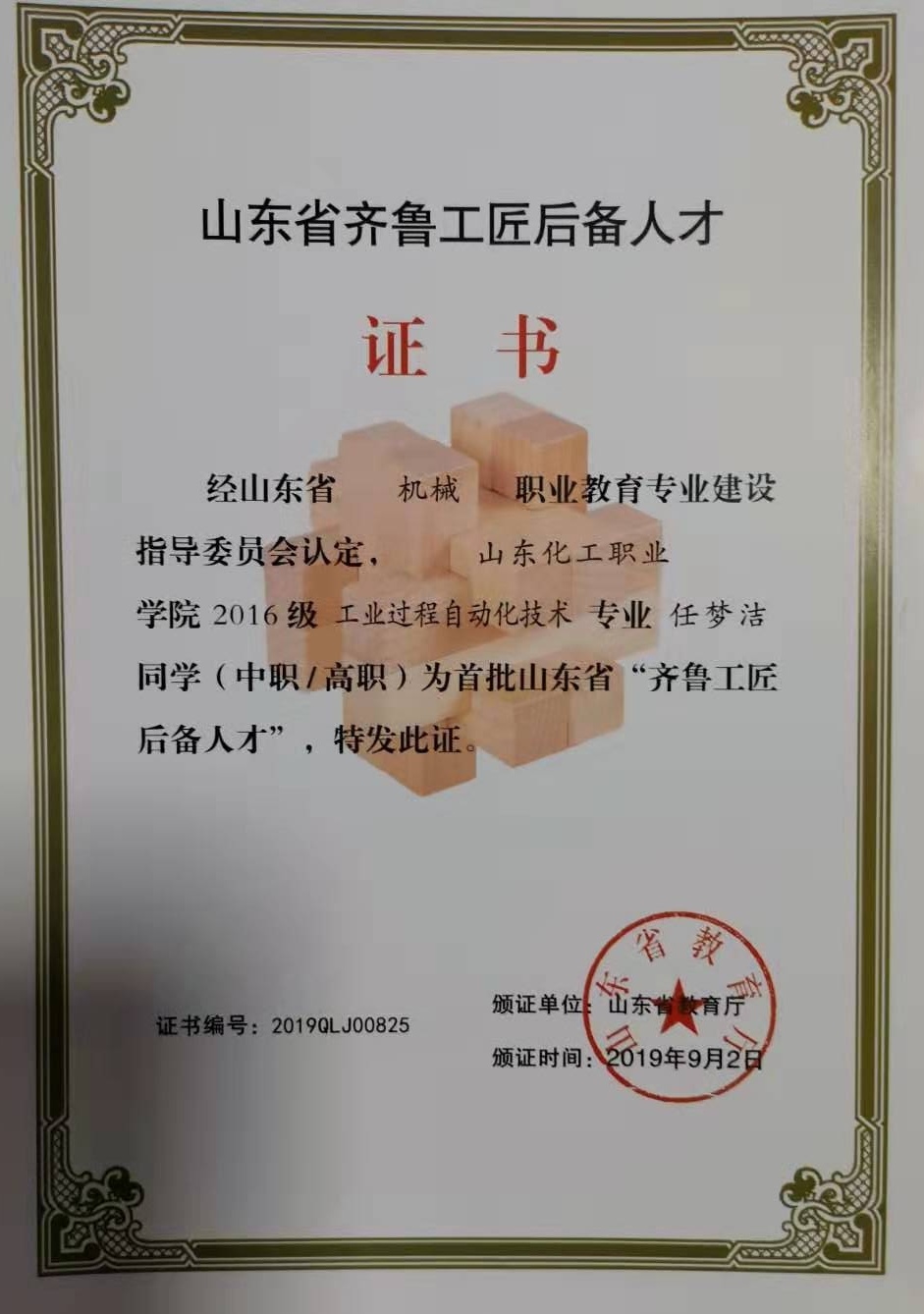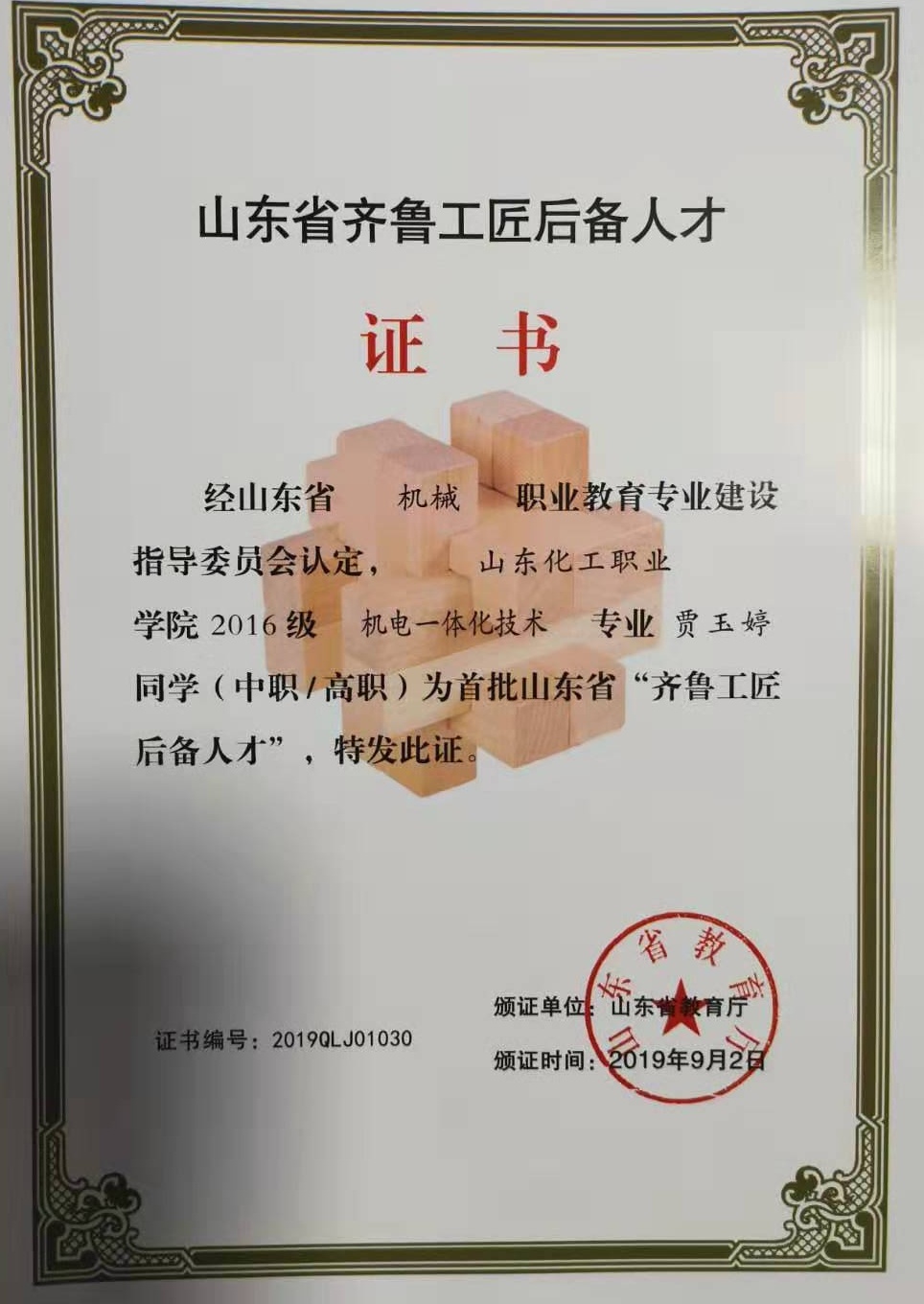 日前,山东省教育厅公布了首批“齐鲁工匠后备人才”名单,山东化工职业学院2016级电气自动化技术专业的薛俊博,工业过程自动化技术专业的刘琛、任梦洁、王雅男,机电一体化技术专业的王彦山、王金强、贾玉婷,会计专业的孙亚静,市场营销专业的刘晓、程志等10名学生成为山东省“齐鲁工匠后备人才”。
