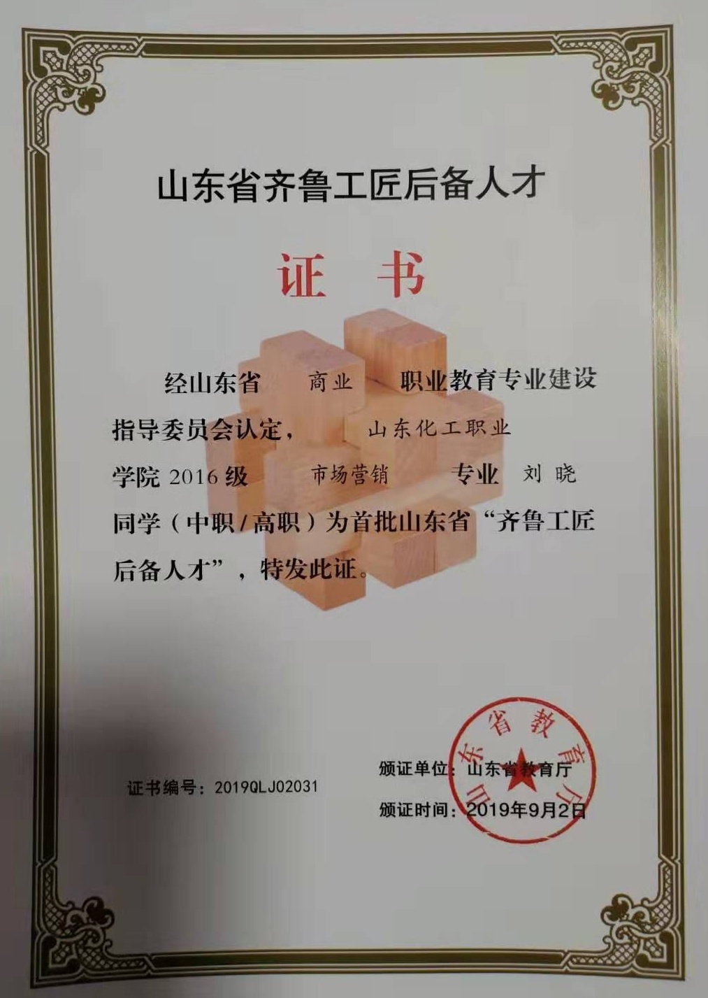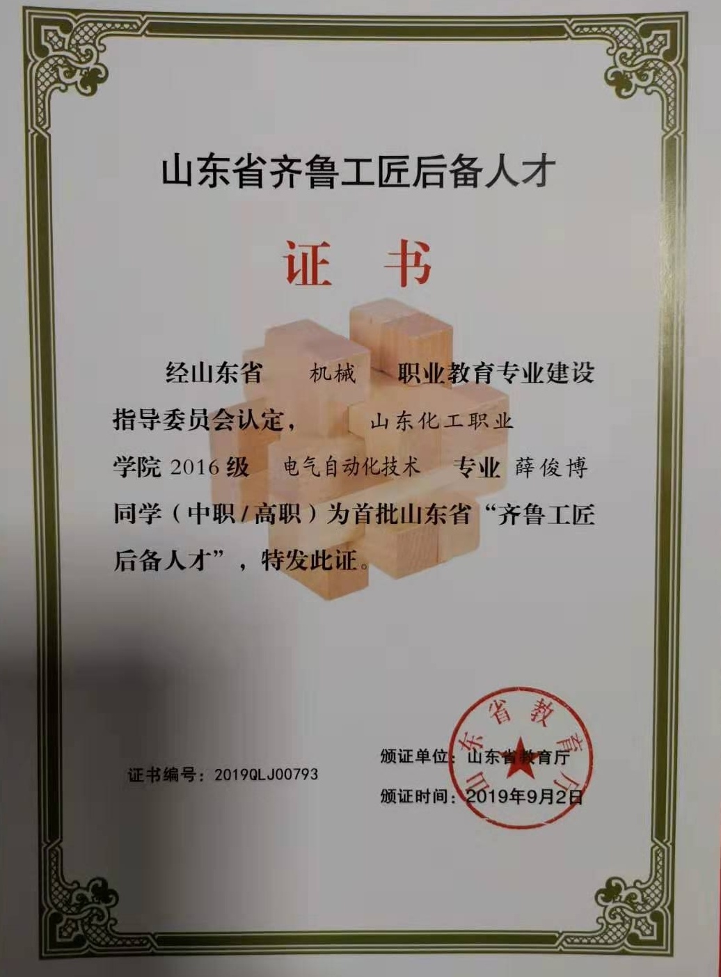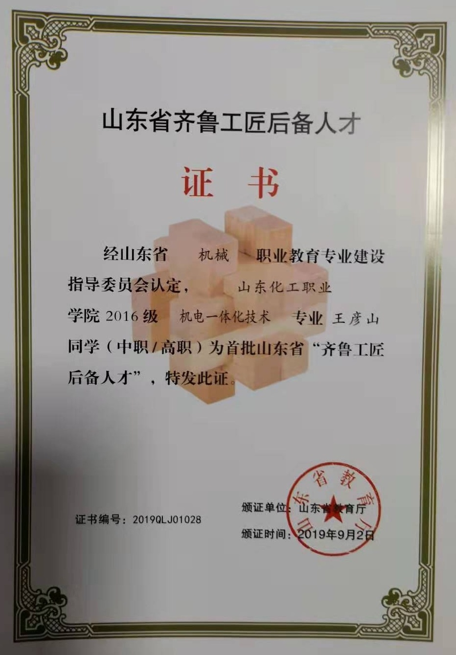 日前,山东省教育厅公布了首批“齐鲁工匠后备人才”名单,山东化工职业学院2016级电气自动化技术专业的薛俊博,工业过程自动化技术专业的刘琛、任梦洁、王雅男,机电一体化技术专业的王彦山、王金强、贾玉婷,会计专业的孙亚静,市场营销专业的刘晓、程志等10名学生成为山东省“齐鲁工匠后备人才”。