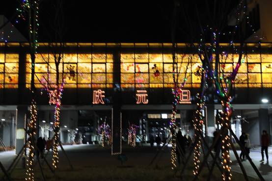 傍晚来临,学院霓虹闪烁,处处洋溢着节日氛围,元旦晚会和精彩纷呈的游园活动正在上演。