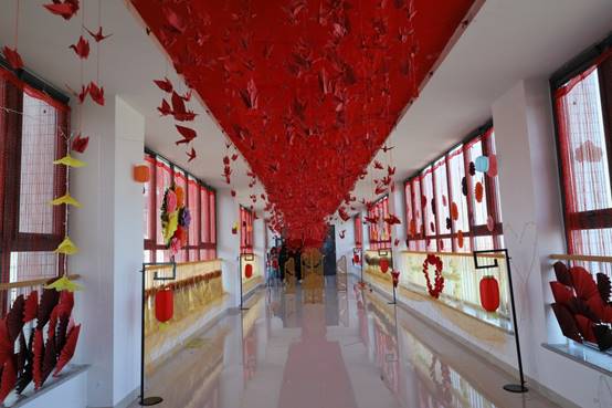 室外,虽然气温已经低至零下,但室内学生们的激情表演和欢声笑语却驱走了严寒,迎来了春天。五年高职的学生们怀揣着对节日的热情,装扮着教室的各个角落。
