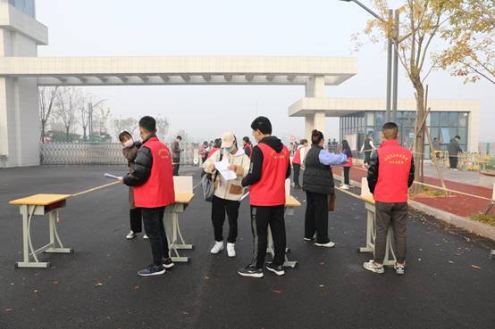 学院严格落实上级有关要求,认真做好考试组织和新冠疫情防控工作,校门口,两道关卡检查考生绿码以及行程码等个人信息,体温检测区配备消毒人员、医务人员为考生发放一次性医用口罩等防疫物资,在最大程度上保障考生安全,优化考试服务。