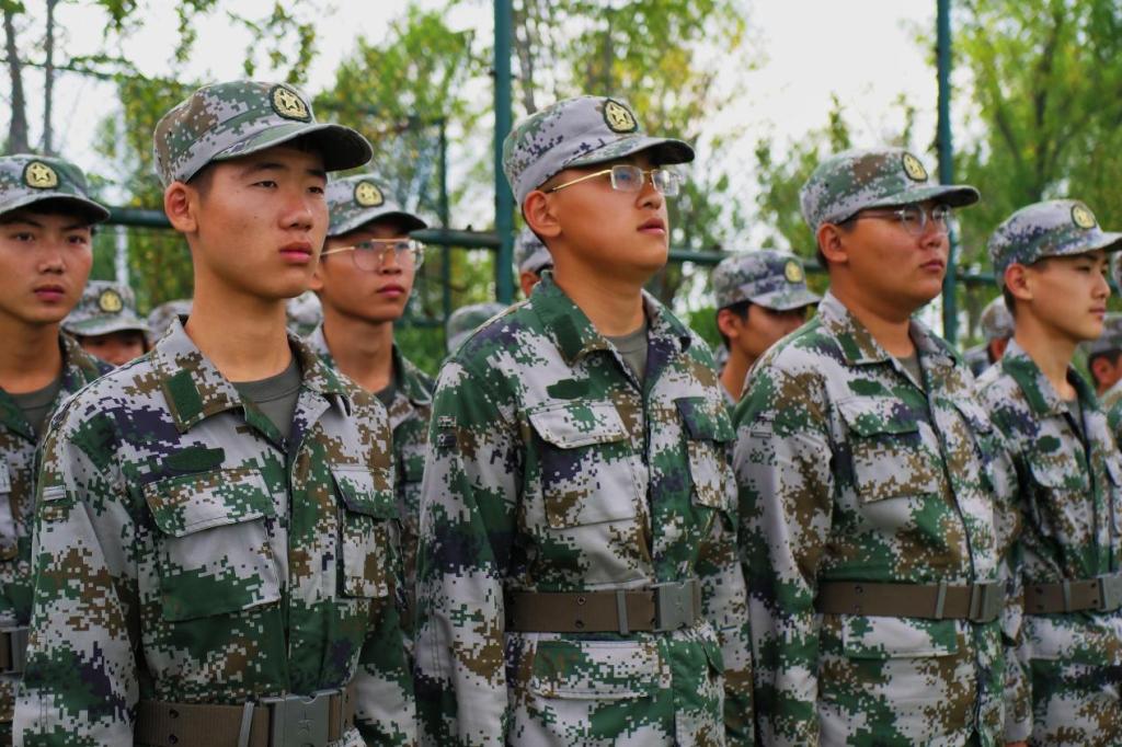 体育场上,身着军装的同学们早已严阵以待。脚步铿锵,衣襟生风,带着一片赤诚之心,大会在庄严肃穆的中华人民共和国国歌中拉开帷幕,全体参会人员起立高唱国歌。
