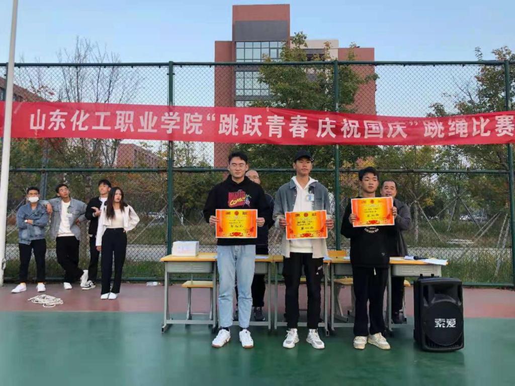 为庆祝新中国成立72 周年,贯彻落实习近平总书记在庆祝中国共产党成立100 周年大会上的重要讲话精神,展示新时代青年学生健康向上、奋发有为的良好精神风貌, 2021年10月27日下午,山东化工职业学院举办了“跳跃青春,庆祝国庆”跳绳比赛,此次活动由机电工程学院承办。