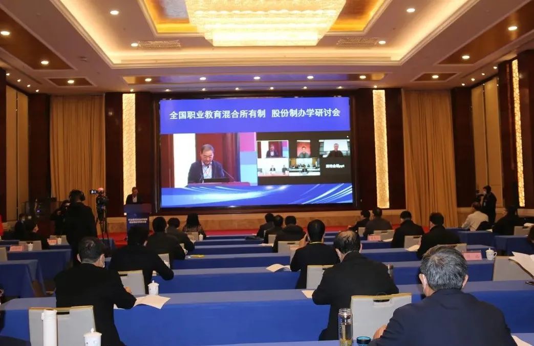 本次研讨会采用线上线下结合形式,以“职业教育混合所有制、股份制办学”为主题,主要研讨职业教育混合所有制、股份制办学实践过程中的难点堵点、主要原因及解决办法,分享交流职业教育混合所有制、股份制办学经验。教育部教育发展研究中心综合研究部主任王烽、全国职业教育混合所有制办学研究联盟秘书长郭素森分别作了主题报告。联想集团、中铁集团、水发集团3家大型企业,台州职业技术学院、山东畜牧兽医职业学院、济南职业学院、长沙航空职业技术学院4所院校分别作了交流发言。全国各地教育行政部门、职业院校、企业代表1万余人通过视频、网络收看了会议直播。