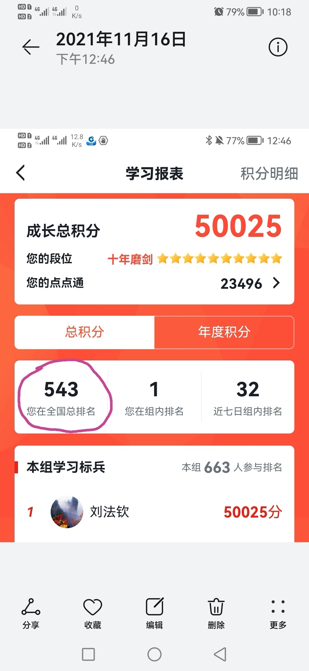 学习是一种习惯,学习离不开坚持与执着。对待“学习强国”的学习,刘法钦老师一直秉承着坚持和认真的态度,让学习成为生活中的一部分。刘老师提到,每天早上起床后便会完成当天“学习强国”的学习打卡,每天晚上临睡前会再复习检查一次当天的学习情况,这些已经成为每天中雷打不动的事情。刘老师对于党史理论的学习不仅仅局限于平台上,工作之余,也会主动找相关资料进行深度学习。