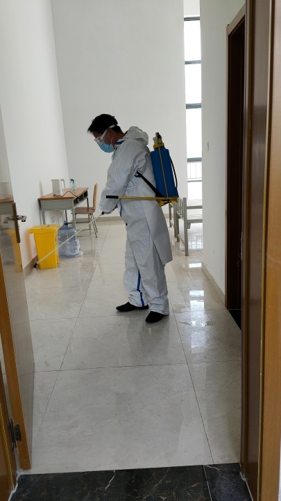 因黄岛、莱西、威海、淄博、潍坊等地区相继出现确诊病例,学校从以上地区返校的学生需要立即到隔离区隔离,尤其是3月7、8、10三天隔离区居住人数一度激增达110人之多。面对隔离人数增多,隔离区管理难度增加,隔离区卫生清理难度增大等困难,褚老师不忘党员初心,牢记打赢学校疫情防控阻击战的使命,自己主动执行清理隔离区卫生任务,并严格执行每天2次消杀任务。同时,褚老师承担起对隔离解除学生房间的最后消毒和通风处理。面对封校期间每天不定时的核酸抽检,褚老师总是一遍遍地穿梭在校园里,清点人数、维持抽检秩序。同时,为了预防人群聚集,褚老师总是提前几分钟电话通知抽检的单位和部门来排队,减少老师们排队的时间,也保证学校核酸抽检任务的顺利完成。