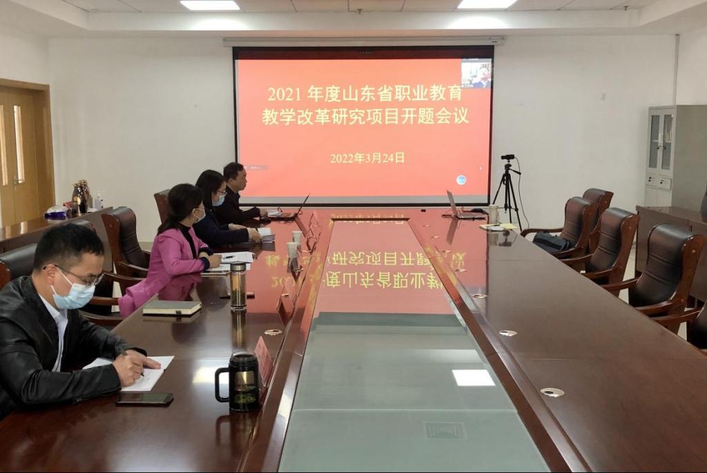 3月24日下午,我校在2207会议室举行山东省2021年职业教育教学改革研究项目开题评审会议,对葛彩霞主持的《校企研共建共享股份制大型智能(仿真)实习实训基地研究-以山东高端化工公共实训基地为例》和杨张欣主持的《新发展阶段国企举办高职院校混合所有制改革研究与实践》进行开题评审。由于疫情原因,5名开题专家组成员采用线上视频方式参会,副校长冯喜成、课题组成员及教务科研处人员到现场参会。会议由副校长冯喜成主持。