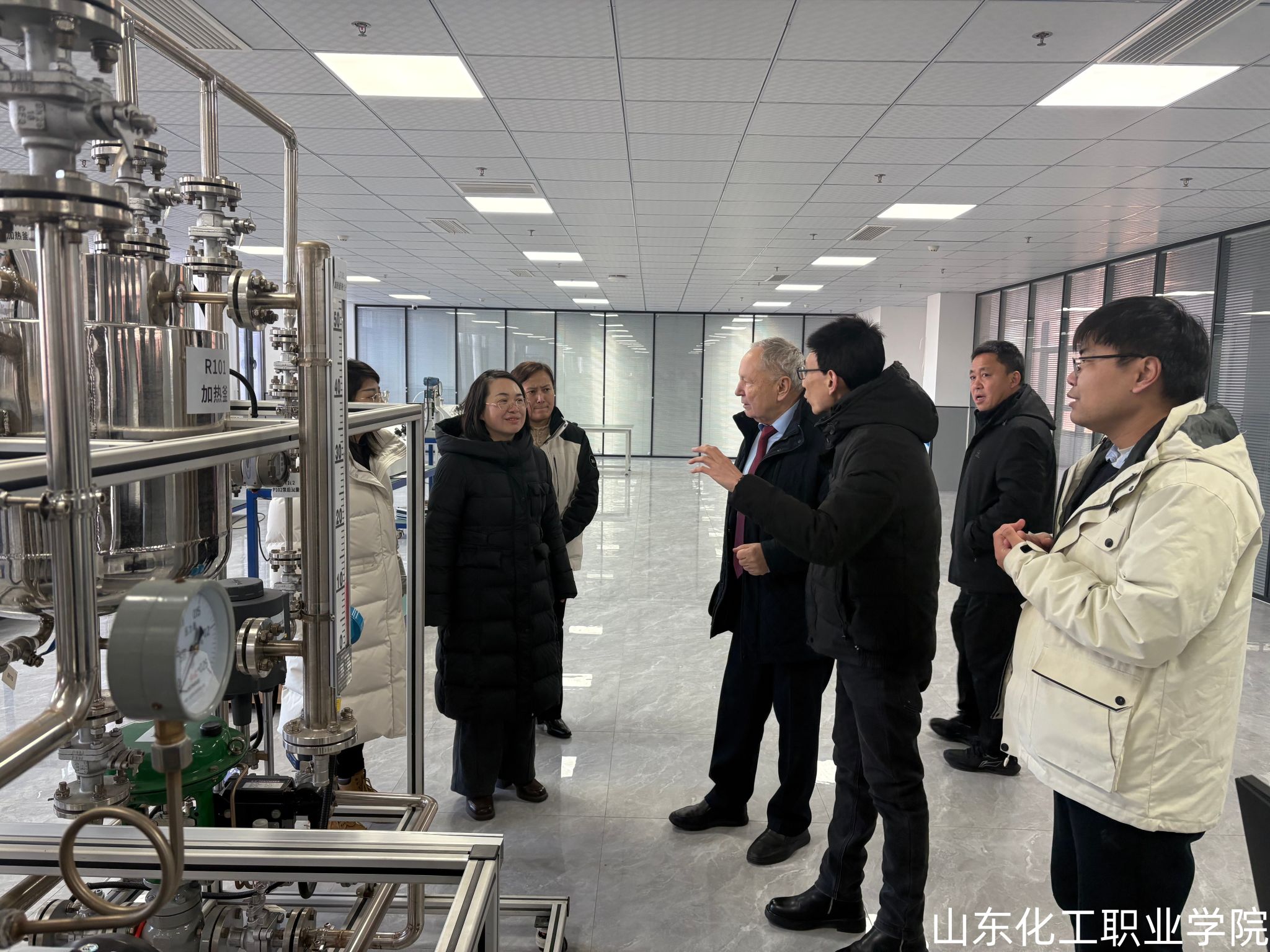 21日上午,瓦列京·索博洛夫一行与化学工程学院院长葛彩霞及骨干教师就人才培养方案开展专题研讨,初步达成学生联合培养的实施意向。期间,瓦列京·索博洛夫参观了山东高端化工公共实训基地、于江涛技能大师工作室和多个实验室,对学院先进的实验设施与鲜明的实践教学特色给予高度评价。