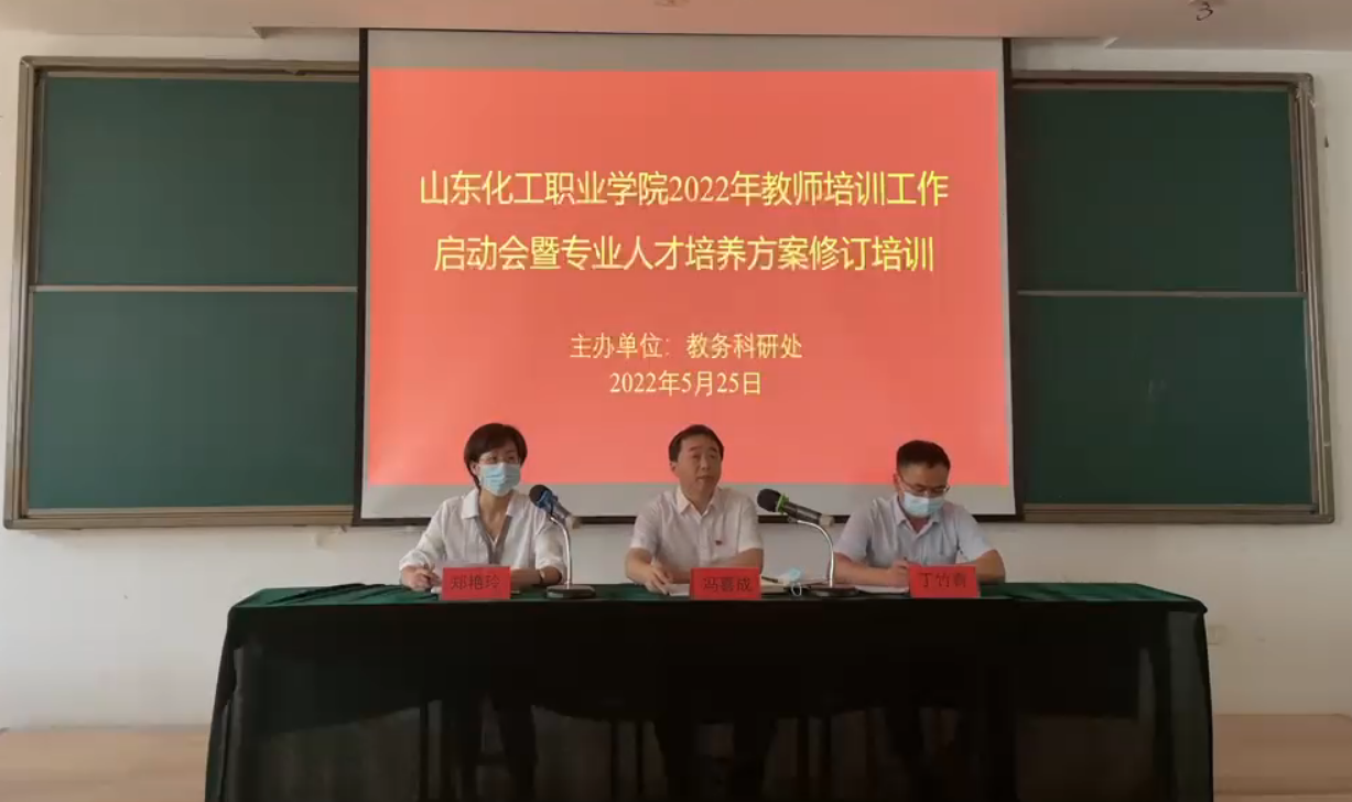 为提高我校教师的教育教学整体水平,建设一支高素质、高水平、高质量的师资队伍,教务科研处于5月25日在8号阶梯教室组织山东化工职业学院2022年教师培训工作启动会暨专业人才培养方案修订培训,各教学单位副院长(副主任)、各专业负责人、专业骨干教师及教务科研处相关人员参加会议。
