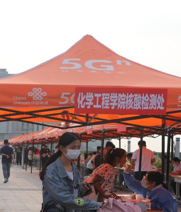 行李消杀,测量体温,查看行程码、健康码,入校核酸检测,迎接萌新,疫情防控不能丢。学校不仅有饱满的热情,更有到位的防疫安全防护措施,井然有序,层层把关,筑牢校园防疫线。