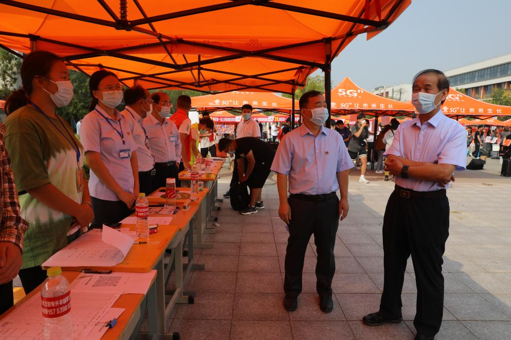 学校领导亲临迎新现场,检查指导迎新工作,了解疫情防控和新生报到工作,询问后勤保障和志愿服务工作,看望2022级新同学,亲切慰问迎新工作人员。