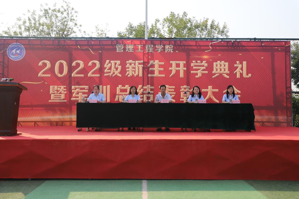 金风玉露丹桂香,启航奋进恰当时。9月28日下午,管理工程学院新生开学典礼暨军训总结表彰大会在足球场顺利举行,1023名新生怀揣梦想,以朝气蓬勃、昂扬向上的姿态开启人生征程的新篇章。学校党委副书记、学院领导出席典礼并讲话,参加开学典礼的还有军训教官、管理工程学院全体教职工、全体新生,典礼由管理工程学院党总支副书记朱怀红主持。