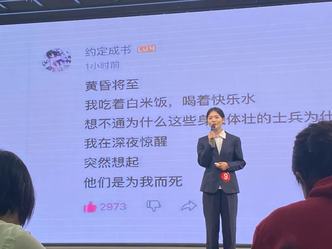 在演讲中,于佳鑫回望历史,立足现在,展望未来,为青春增色,也以此勉励身逢盛世的青年学子,敢于担当使命,奋力前行。