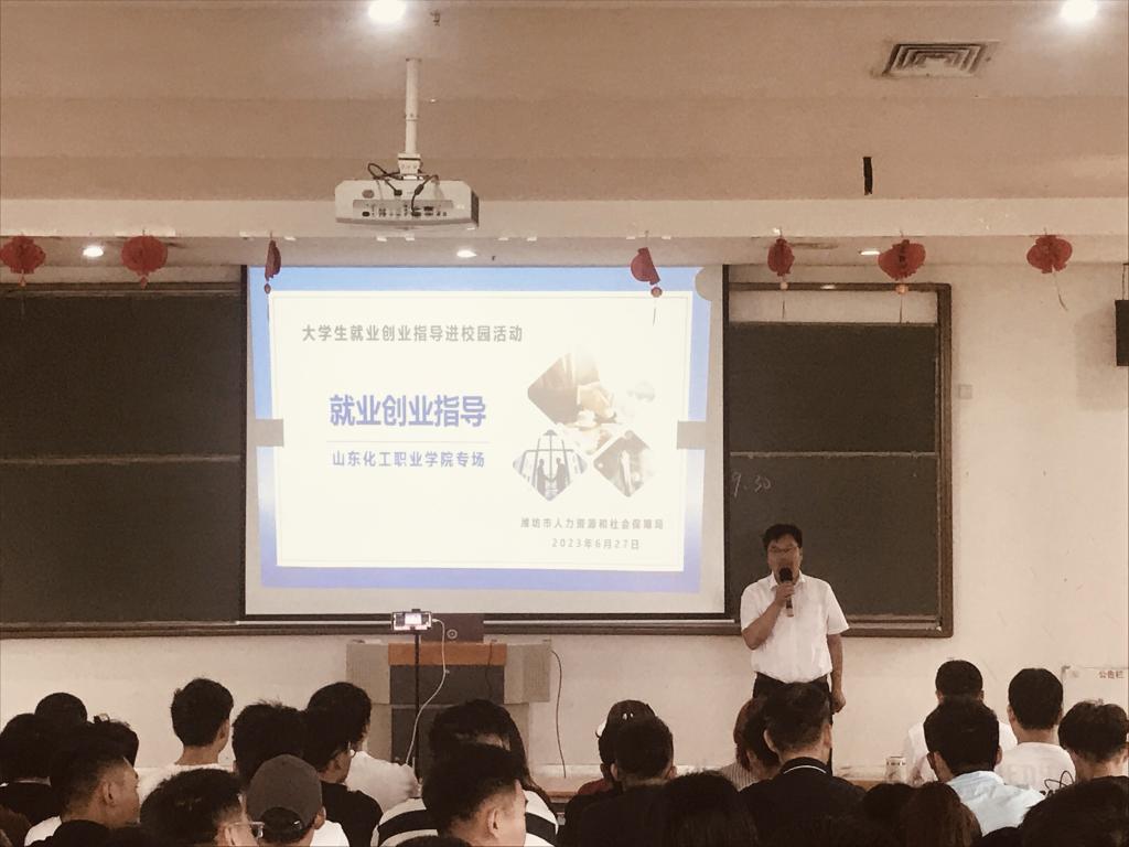 2023年6月27日,由潍坊市人力资源和社会保障局主办,潍坊市公共就业和人才服务中心承办的“大学生就业创业指导进校园活动”在我校成功举办。