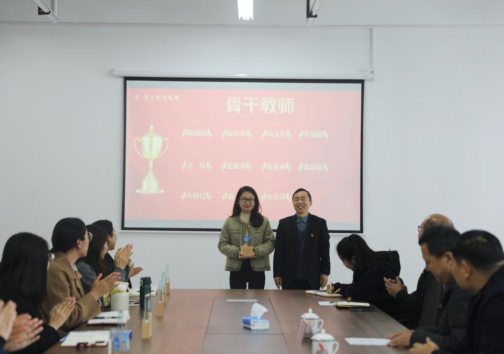 冯喜成副校长为第一批骨干教师授牌,潘慧副书记为金牌辅导员授牌。骨干教师代表王雅男和金牌辅导员代表赵杨分别作表态发言,他们将发挥榜样引领作用,凝心聚力,踔厉奋发,全力推动学校教育事业的高质量发展。