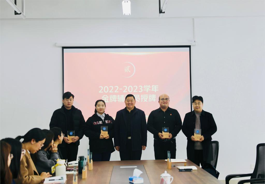 为深入贯彻学校事业发展十四五规划,培养一批骨干教师和领军人物,推动我校辅导员队伍专业化、职业化建设,4月3日下午,学校举行骨干教师、金牌辅导员授牌暨辅导员工作室建设启动仪式。启动仪式由党委副书记潘慧主持,党委书记孔祥奴、常务副校长冯喜成及第一批骨干教师和金牌辅导员出席了仪式,二级学院和部分行政部门主要负责人参加见证了整个仪式。
