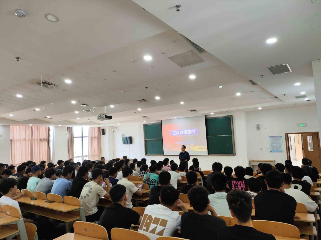 学校人武部工作人员分别就征兵政策、报名流程及学生关心的学籍学历、教育资助等内容进行了详细的讲解和现场答疑。