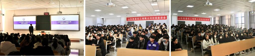 为加强学生对我校合作企业的认识和了解,搭建通往优质企业实训、实习、就业的桥梁,进一步推动和提升学生就业质量。12月4日,山东胜星化工有限公司来我校开展校园宣讲会,2023级应用化工技术、石油化工技术、精细化工技术、海洋化工技术等专业共200余名同学参加此次宣讲会。