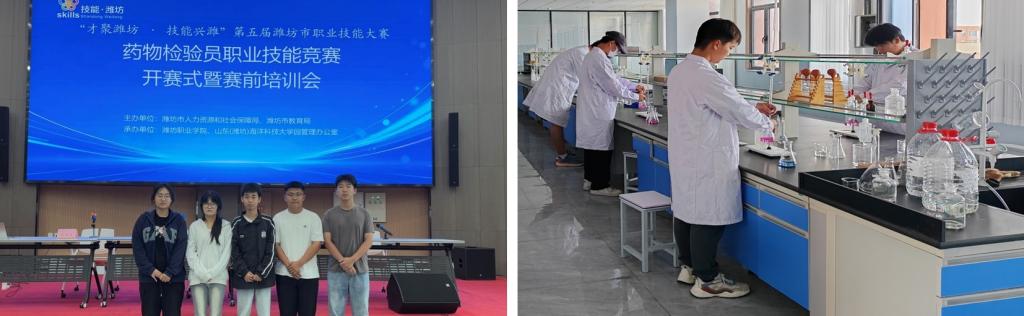 近日,潍坊市教育局、市人社局下发《关于公布“才聚潍坊·技能兴潍”第五届潍坊市职业技能大赛—园艺(园林绿化工)、农业数字化技术员等职业技能竞赛获奖名单的通知》。在此次技能大赛中,化学工程学院师生凭借扎实的理论功底、精湛的操作技艺和出色的现场发挥,在药物检验员竞赛项目中脱颖而出,斩获佳绩。其中,陈学惠、包磊老师分别荣获职工组一等奖、三等奖,苏昱君同学荣获学生组二等奖,田锦坤、满孝静同学荣获学生组三等奖,充分展现了我院师生卓越的专业技能水平和良好的精神风貌。