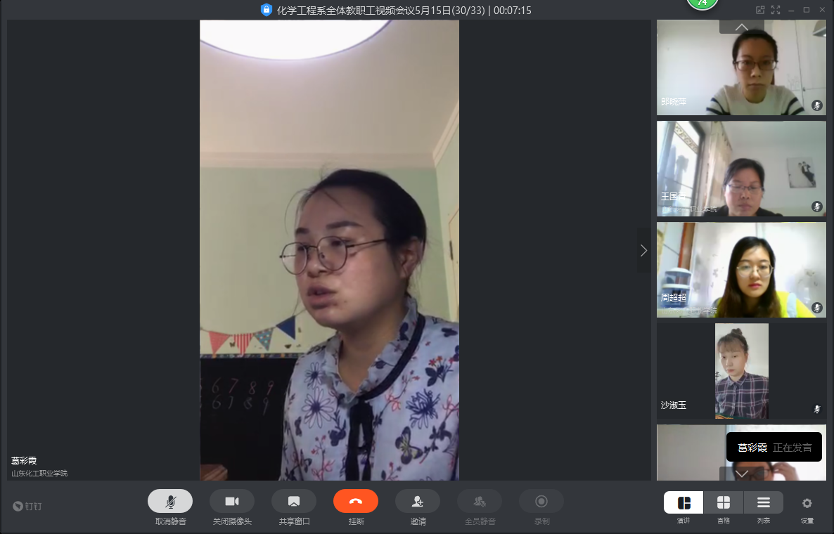 化学工程系吕主任总结了各教研部主任的发言,并表示,我系全体教师要认真对待这次考核,按照葛彩霞同志解读的内容,不断加强自身专业能力的提升,找准方向,扎实推进,争取在教学、科研、产教融合等各方面取得更大的进步。另外,吕主任就近期需要开展的工作进行统筹要求,一、全体教职工做好开学准备;二、教师要做好各课程线上线下教学衔接;三、各专业做好开学后学生仿真实训的课程准备工作;四、招生工作迫在眉睫,包括春招、夏招、单招等,认真落实单招考试相关工作;五、准备好创新创业大赛、技能大赛等学生比赛和精品资源共享课设计大赛、微课大赛等教师比赛。