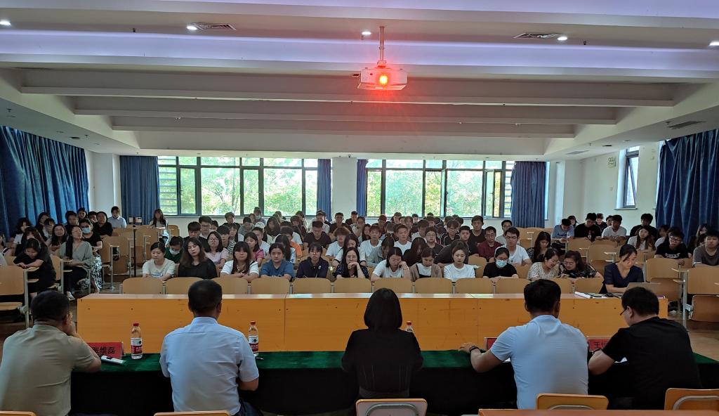 为扎实做好2021级学生实习工作,进一步促进学生对所学知识和技能进行实践运用、总结和深化,引导学生明确认识实习的目的和意义,2023年6月9日下午,化学工程学院通过线上、线下相结合方式,在阶梯1组织召开了2021级实训/实习动员大会。会议由化学工程学院实习管理张维磊老师主持,学校教务科研处副处长丁竹青、培训处副处长王超、化学工程学院党总支副书记、副院长葛彩霞、化学工程学院党总支副书记王恒磊、全体实习指导教师、辅导员及2021级全体学生参加。