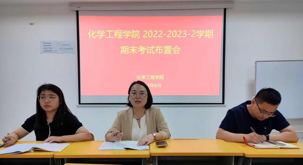 为进一步端正考风考纪,严肃考试纪律,加强我院考试的组织与管理工作,2023年6月19日下午,化学工程学院在2308组织召开了2022-2023-2学期期末考试布置会。会议由化学工程学院副院长葛彩霞同志主持,全体监考教师参加。
