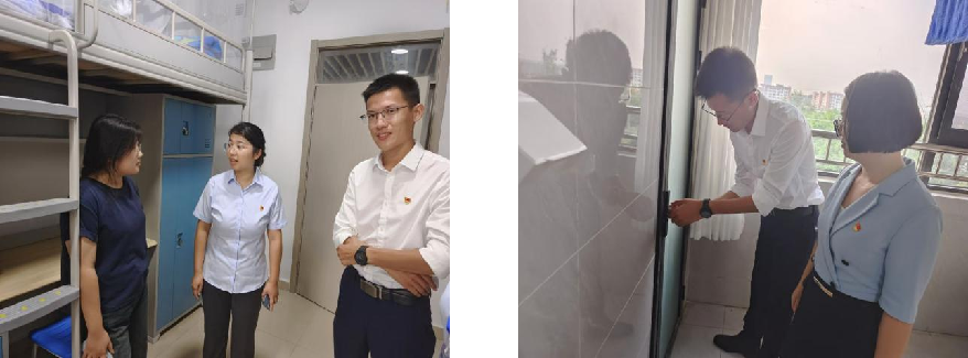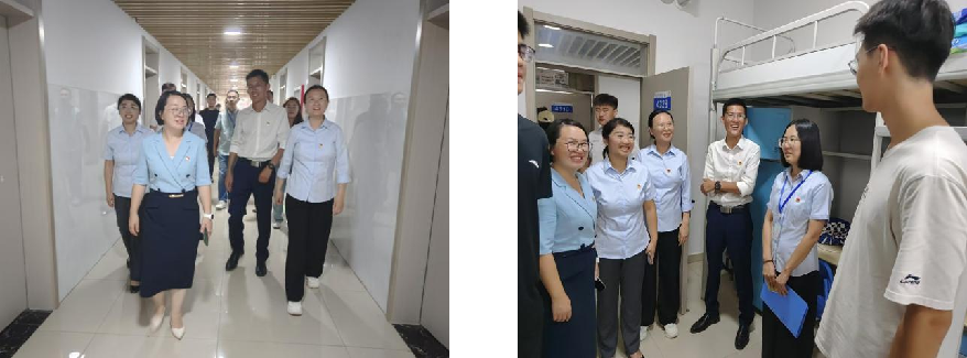 走访过程中,学院领导的关怀之情溢于言表,每到一处,与新同学们亲切交流,他们首先向学生们致以问候,询问他们的入学感受,住宿条件、生活习惯等方面。其中,重点关注了宿舍的安全和卫生情况,针对个别宿舍存在的问题,葛彩霞院长和任腾飞副书记给与了极大的关注,现场记录了相关意见,以便后续改进和落实,进而提升服务质量,为学生提供更加舒适的生活环境。学院领导不仅关心学生们的生活,还鼓励同学们在大学期间坚定理想信念,制定学习目标,规范作息,珍惜大学时光。同时,还嘱咐同学们之间要和谐相处,互敬互爱,互帮互助,保持宿舍卫生,养成良好的生活习惯,共同营造温馨和谐的宿舍文化。