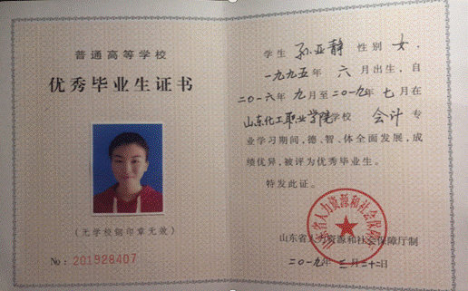 2016级担任实习组长的孙亚静积极参与RPA自动化建设项目的实施,与师傅一起参与编写预制凭证核算自动化流程方案并顺利实施,大大降低了月末月结的工作强度,获得服务部领导的好评和认可。在淄博服务部“不忘初心牢记使命”主题演讲比赛中作为实习学生代表演讲的《牢记使命勇担当,共享青年在路上》荣获三等奖。在学院领导的推荐下,凭借其在校及实习期间的突出表现被认定为“齐鲁工匠后备人才”并荣获省级“优秀毕业生”荣誉称号。