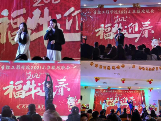 在主持人“玉鼠回宫传捷报,金牛奋蹄涌春潮”的报幕声中,2021年元旦联欢晚会徐徐地拉开序幕。学生处罗勇处长为管理工程学院元旦晚会开场致辞。