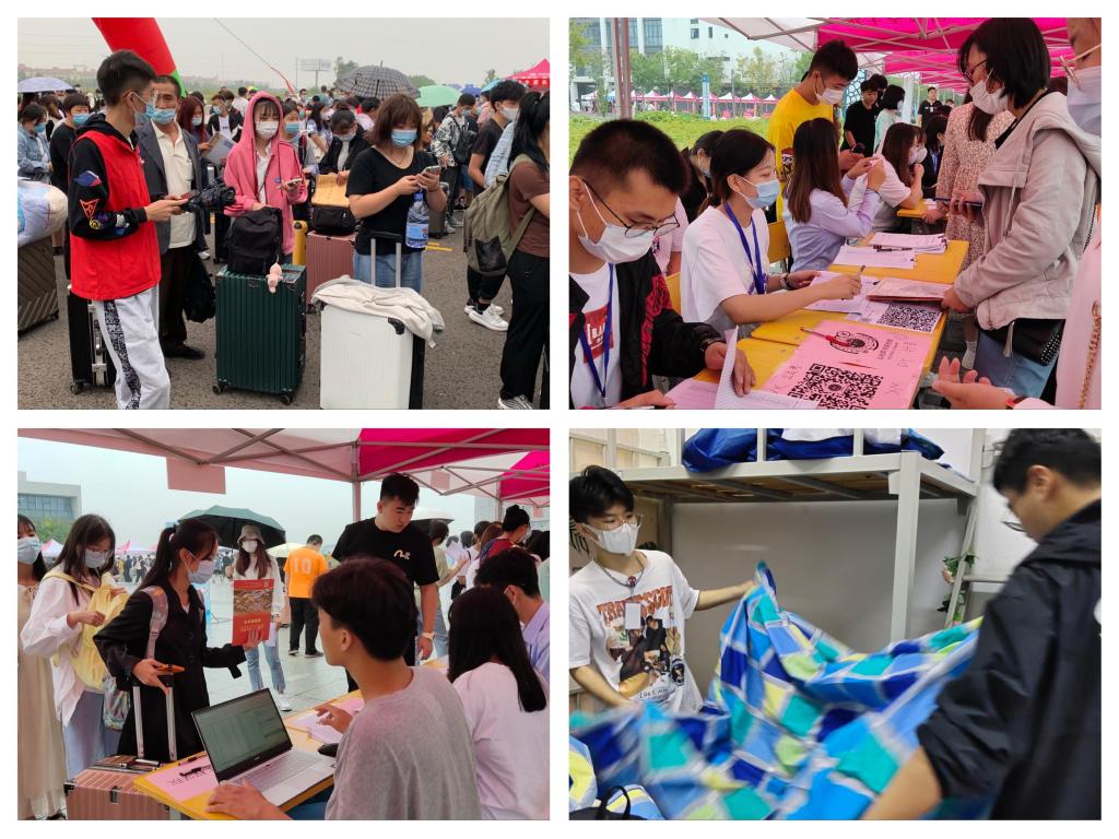 二多方协作,全力以赴。迎新过程中,全体党员教师带领学生入党积极分子、志愿者提前到岗,做好准备工作。新生从进入校园开始,物品消毒、健康码查验、报到、领被品、入住宿舍、后勤保障、专业咨询等各项工作稳步进行。师生党员和入党积极分子们身处每个需要的角落,主动接过沉甸甸的行李箱,引导新生办理报道手续,他们用热情的微笑,耐心的言语,贴心的服务帮助新同学们顺利入学,让新生们感受到了如家的温暖。