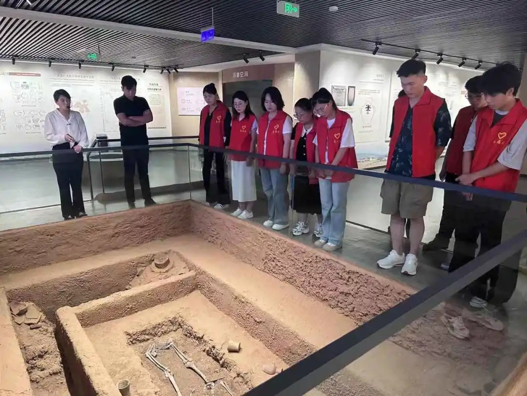 大汶口遗址博物馆内,展出着石器、骨角牙器、陶器等文物以及根据考古勘察进行复原的房屋场景。讲解员详细介绍文物的出身、文物蕴含的意义,让学生深入了解大汶口文化的起源、发展、内涵及其在中华文明史上的重要地位,丰富学生文化知识,增强学生文化自信。