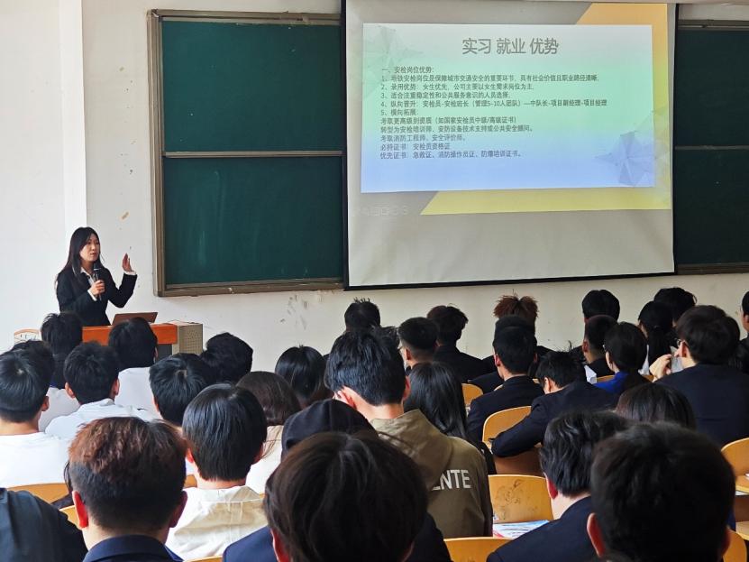 4月24日下午,青岛地铁集团宣讲团队走进我校国凯航空学院,在阶梯8教室举办校企合作专场宣讲会。学院副院长孙磊主持宣讲会,2023级近200名学生聆听了宣讲。