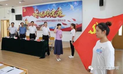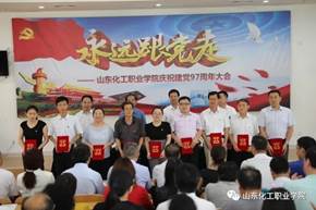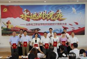 为铭记党的光辉历史,歌颂党的光辉业绩,充分发挥先进典型的示范作用,凝心聚力共谋改革创新发展,6月27日下午,山东化工职业学院在2号多媒体报告厅隆重举行庆祝中国共产党成立97周年大会暨专题党课。学院领导王敬良、李欣、潘慧、耿晓明,全体党员和教职工参加。大会表彰了先进党支部、优秀共产党员和优秀党务工作者,王敬良院长作了专题党课报告。大会由党委副书记潘慧主持。