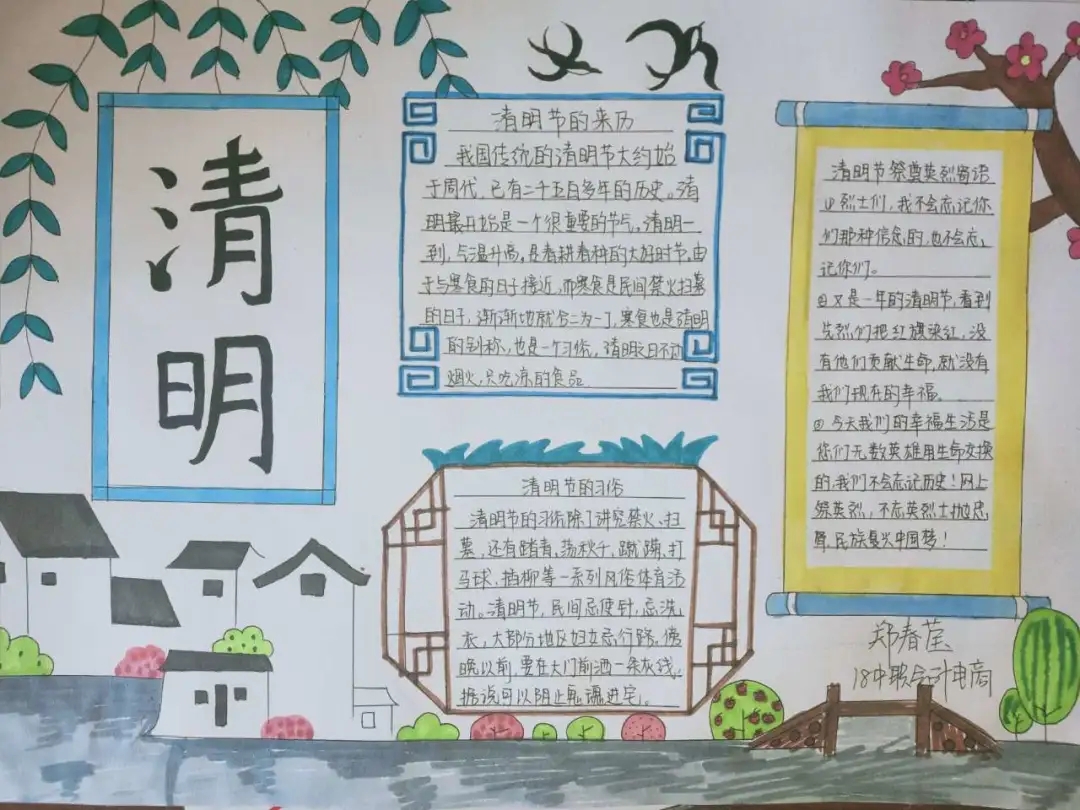 同学们在微信、QQ等社交软件的朋友圈,发布手写祭奠英烈寄语、致敬英雄手绘画等作品,以此表达对革命先烈的景仰和追思。一张张精美的手抄报,一段段饱含深情的文字,寄托同学们对革命先辈、英雄的缅怀之情。